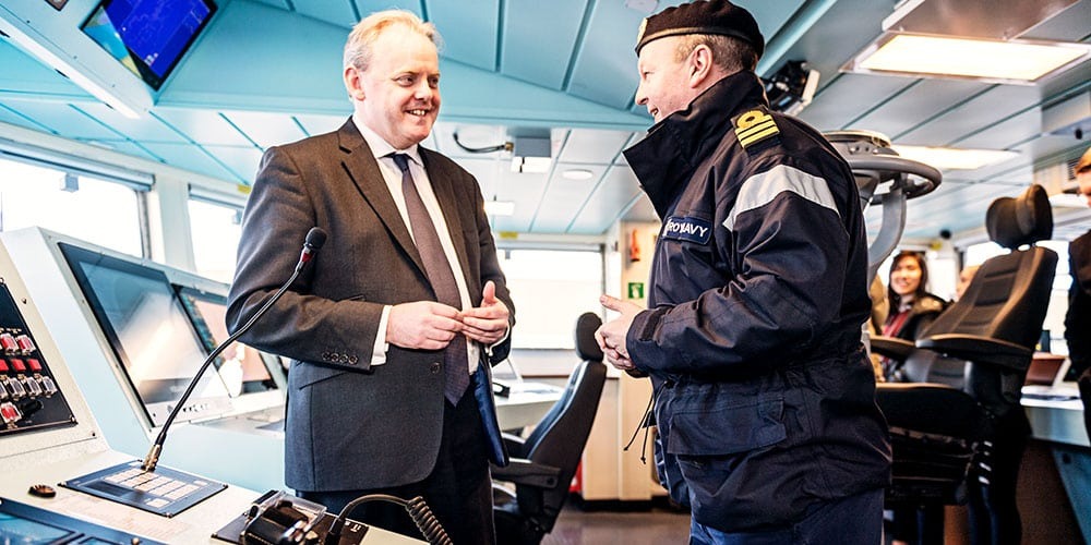 Defence Minister Guto Bebb formally announced the acceptance of HMS Forth, the Royal Navy’s new Offshore Patrol Vessel (OPV), from manufacturer BAE Systems when he visited the company’s Scotstoun shipyard.